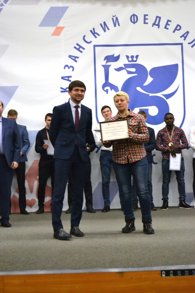 Также, грамотой «За подготовку команды КФУ для участия в чемпионате Студенческой гандбольной лиги Республики Татарстан» и золотой медалью наградили тренера команды Александру Геннадьевну Коржеву.