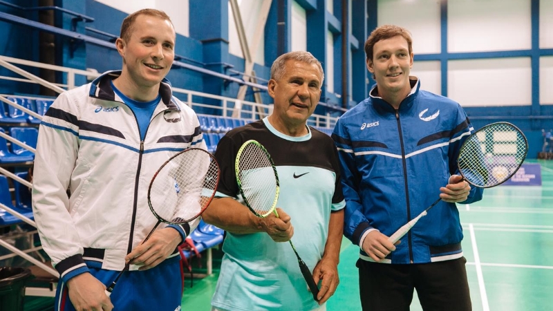 Второй раз мы встретили Рустама Нургаливича в Центре бадминтона. Он приходил поиграть в бадминтон с заместителем Председателя Правительства Российской Федерации – Максимом Алексеевичем Акимовым. Нас пригласили, как лучших бадминтонистов. Там фото и сделали.