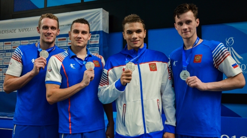 Григорий Тарасевич, обучающийся в Поволжской академии спорта, плыл на первом этапе эстафеты и показал второе время. Студент ТИСБИ и спортсмен СК ВВС «Синтез» Егор Куимов вступил в борьбу на третьем этапе, завершив свою 100-метровку на первом месте. К сожалению, на четвертом этапе Иван Кузьменко не смог удержать добытое преимущество, и россияне финишировали вторыми с результатом – 3:33.72. Победу одержала команда США (3:33.02), бронзовые медали в активе студентов из Бразилии (3:35.33).