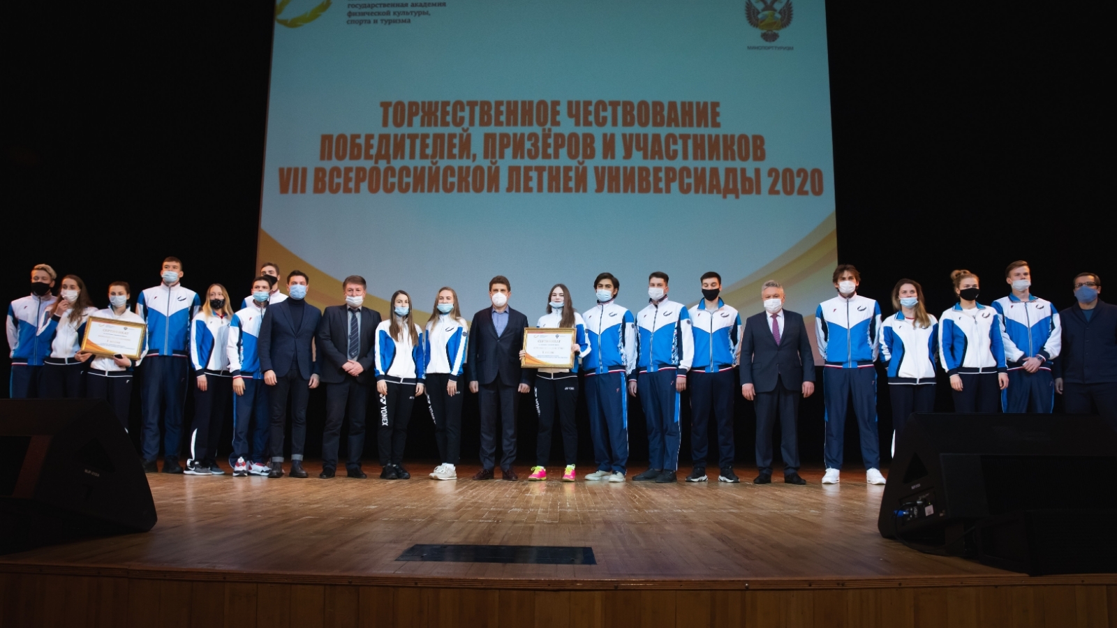 11 ноября в концертном зале «Академия» прошло торжественное чествование победителей, призёров и участников VII Всероссийской летней Универсиады 2020, которая прошла в Екатеринбурге с 26 сентября по 18 октября.