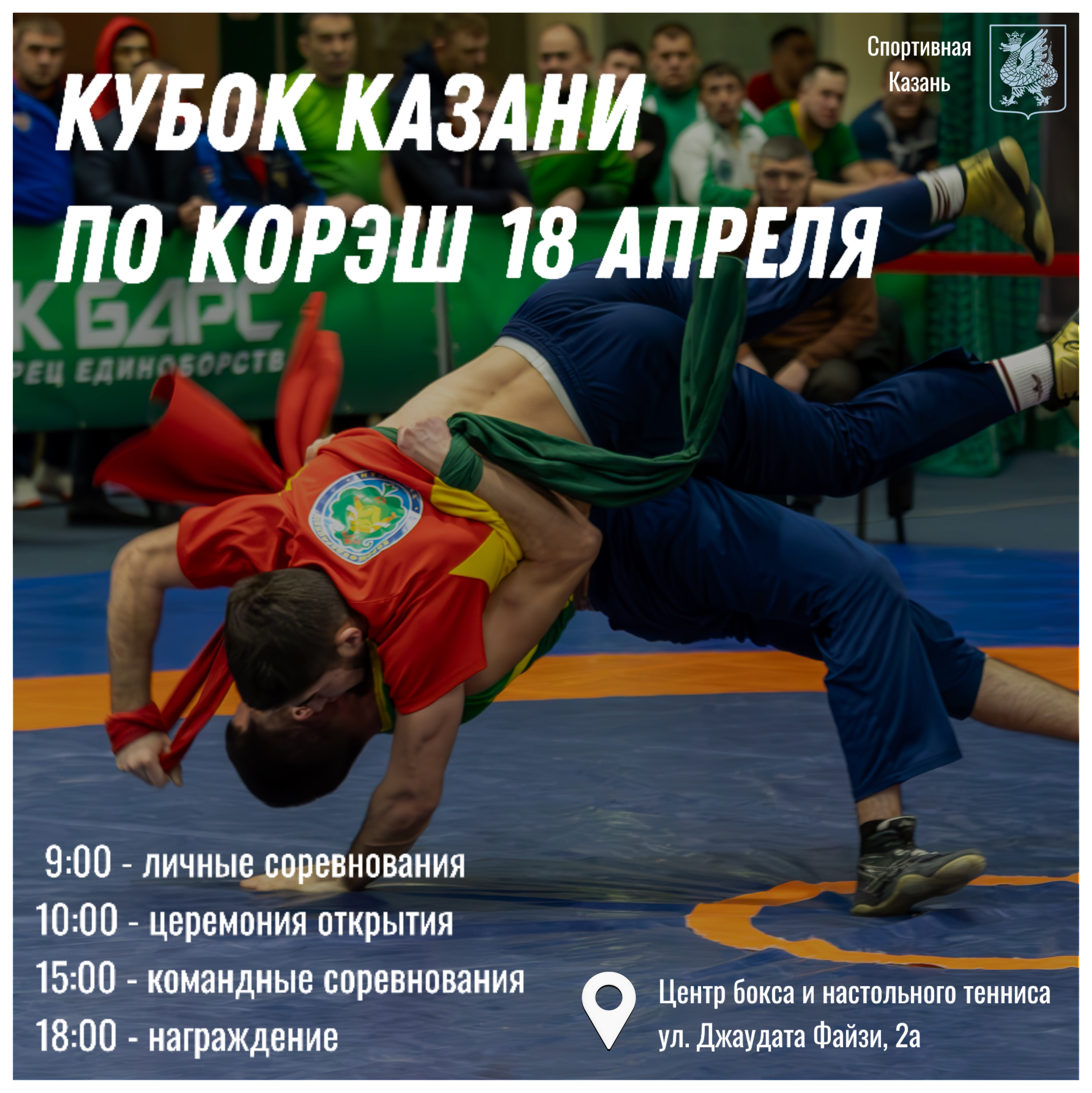 В Центре бокса и настольного тенниса, по адресу: ул. Джаудата Файзи, 2а, 18 апреля пройдет ежегодный Кубок Казани по поясной борьбе корэш.