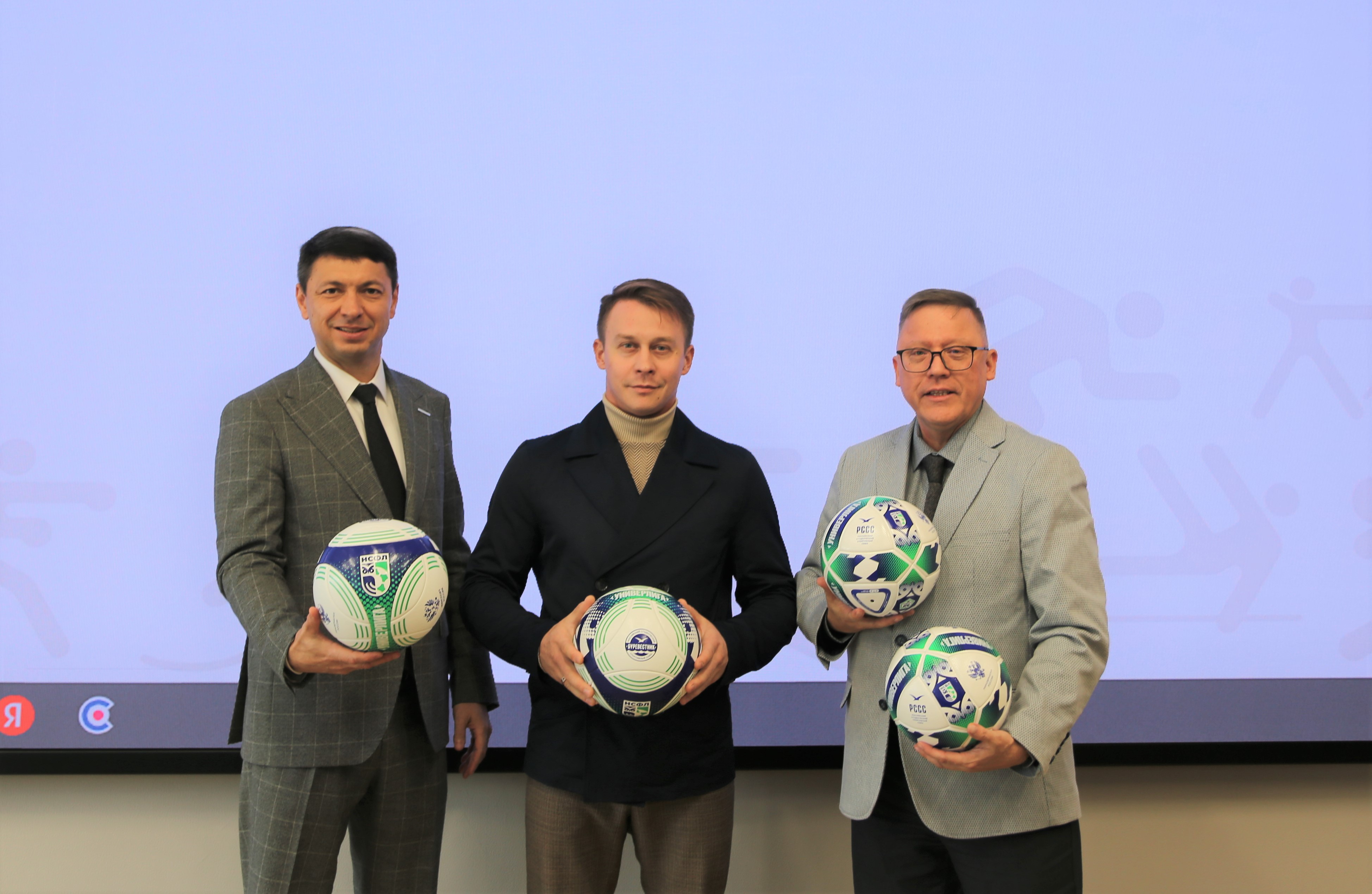 24 октября 2025 г. в Министерстве спорта Республики Татарстан прошло вручение футбольных мячей и мячей по мини-футболу от Российского спортивного студенческого союза с участием Заместителя министра спорта Республики Татарстан – Ильдара Зуфаровича Садриева, Председателя РОО «ФСО «Буревестник» РТ – Эмира Ренатовича Харисова. На вручении присутствовали заведующие кафедры физического воспитания и руководители спортивных клубов.