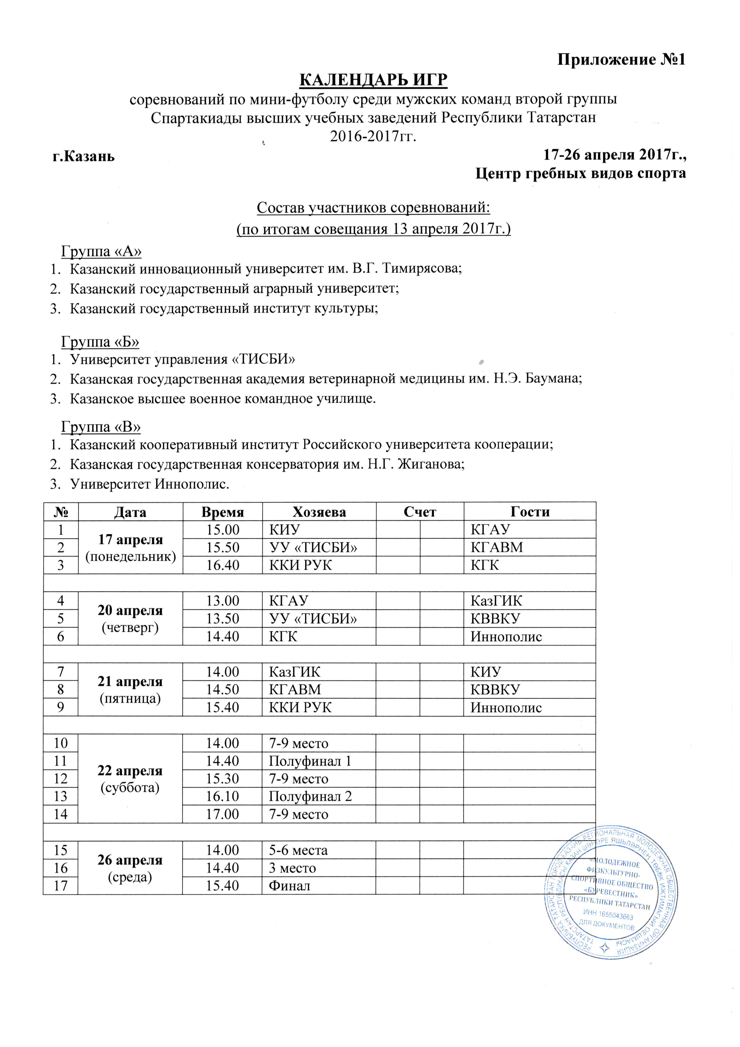 Календарь мини-футбол вузы 2 гр. вузы 2016-2017 (нов.)